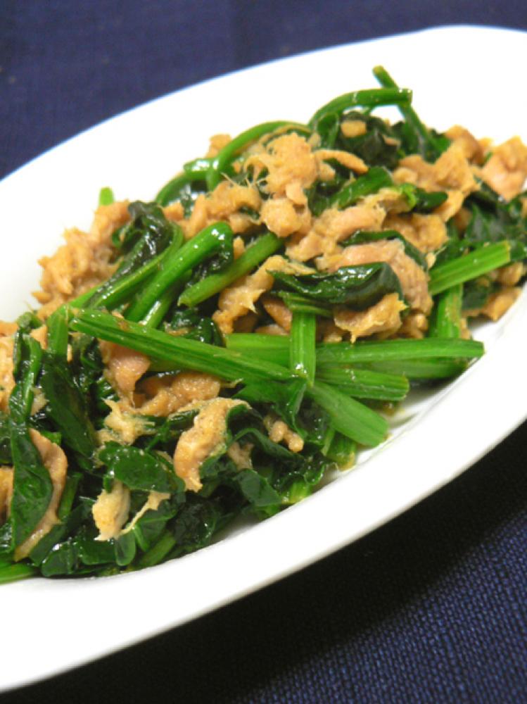 ほうれん草は水洗いして食べやすい大きさに切っておく。フライパンにバター、ほうれん草を炒める。