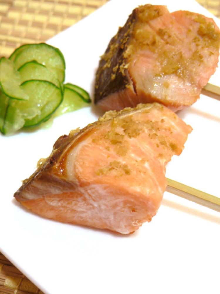 鮭は骨をていねいに取り除き、ひとくちサイズに切っておく。