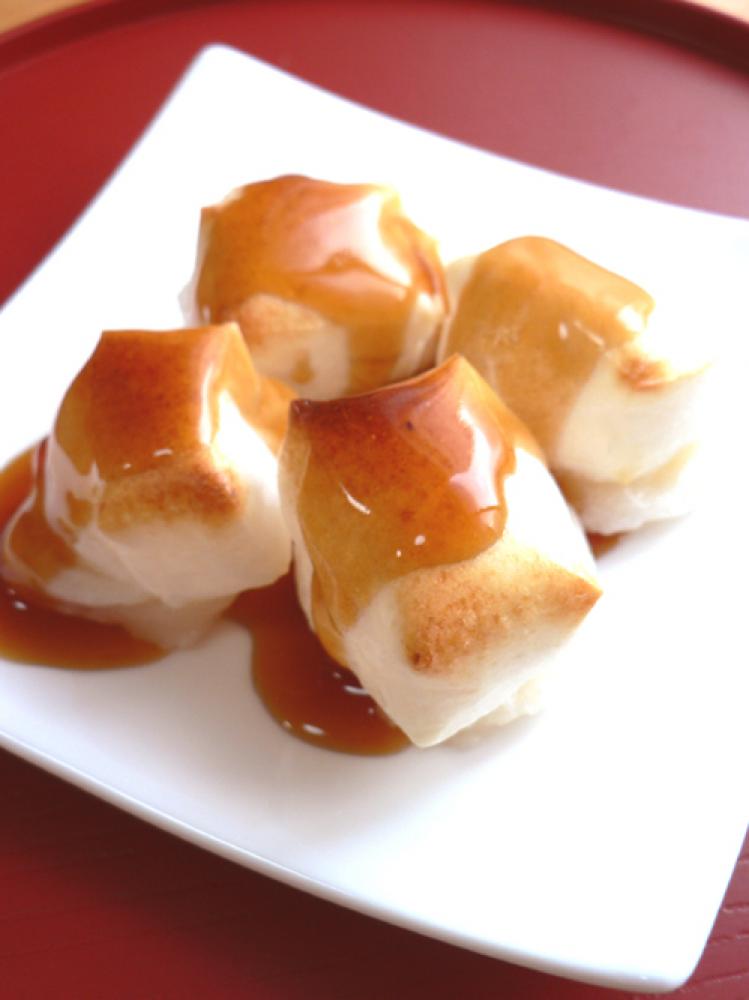 お餅は1個を4分割してオーブントースターで焼く。