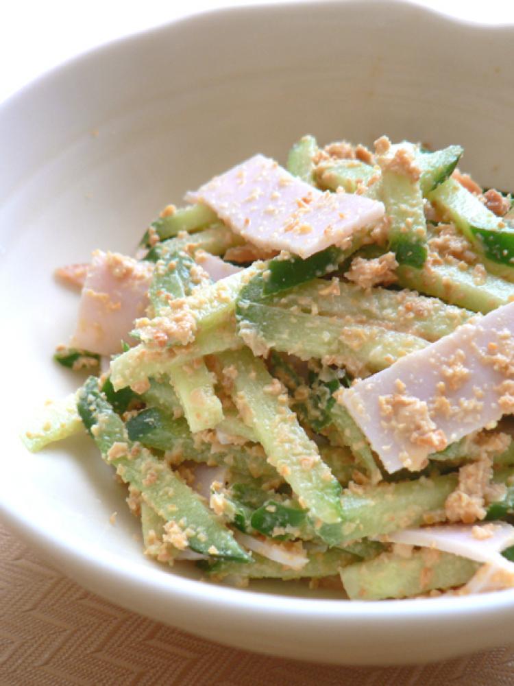 ハムは食べやすい大きさにカット、きゅうりは細切りに。
