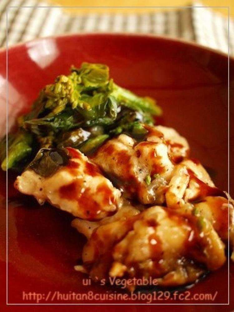 ささ身はスジを取って塩コショウし一口サイズの削ぎ切りにして片栗粉をまぶす。