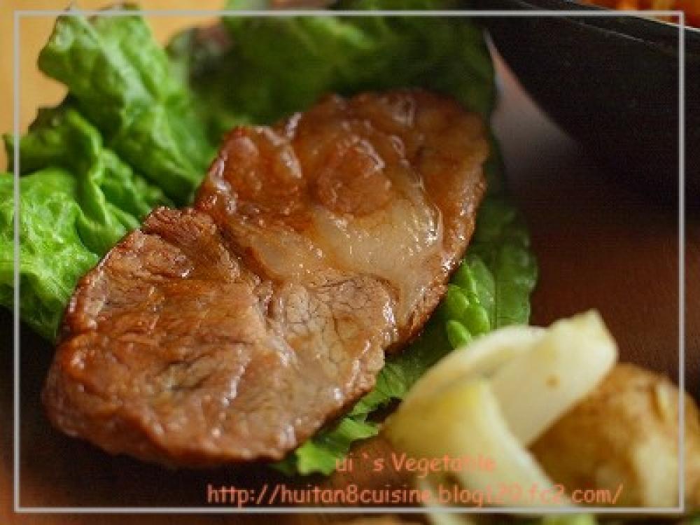 豚肉の表面をフライパンで焼く。全部の面に焼き色をつける。