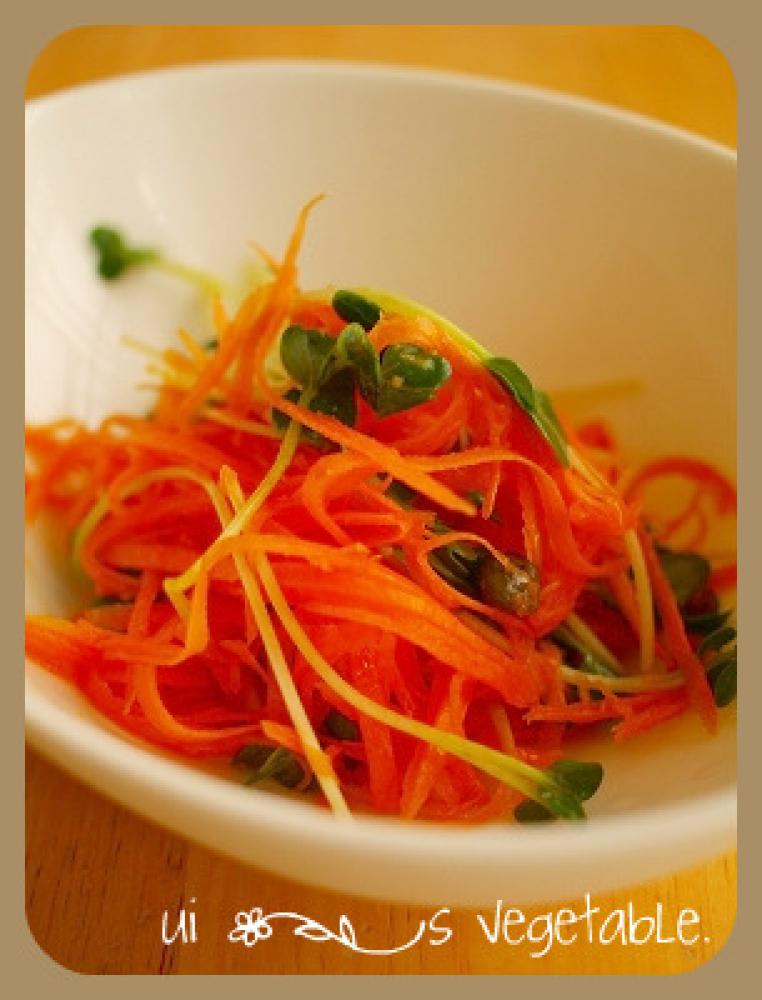 ボウルに千切りしたニンジン、かいわれを入れてAの調味料を入れてよく和える。