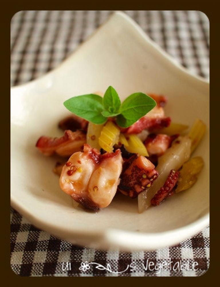 フライパンにオリーブオイルを入れ熱してタコとセロリ胡椒を振りさっと炒める。