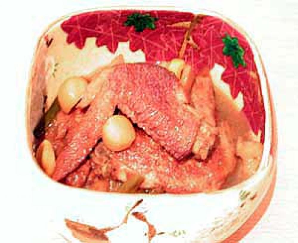 栗、れんこん、長ねぎを入れてさっと炒め、(B)の調味料を加えて強火で煮る。