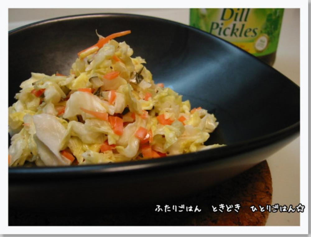 【下準備】キャベツは太めの千切りに、にんじん・ピクルスは少し細かく刻んでおく。(だいたいで良いです。)