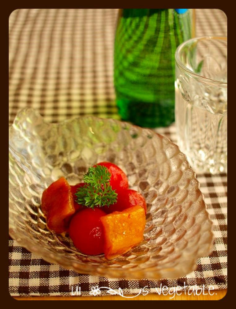 トマトは皮を湯剥きし、パプリカはトースターや魚焼きなどで半分に切って皮を上にしてしわしわになるくらい焼く。