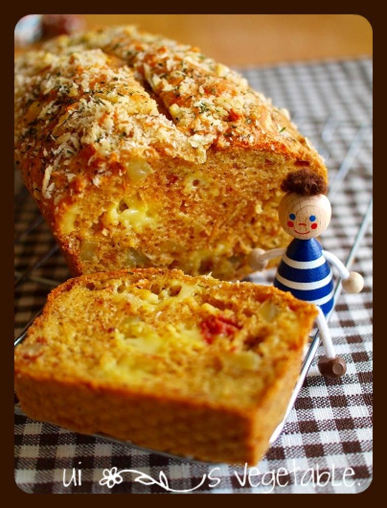 型に流したらヘラで表面を平らにし、チーズ、パン粉、パセリを散らす。