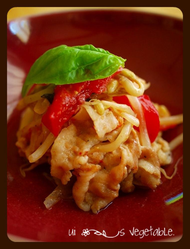 そこに混ぜておいたスパイスを加えトマトバジルを入れて強火でサッと炒めて出来上がり。