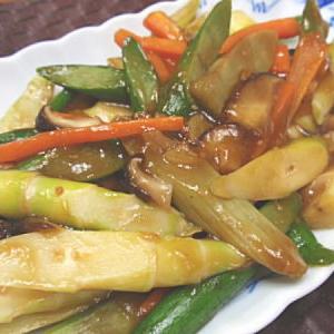 ウドと姫たけのこの辛味噌炒め