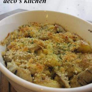 鶏と新じゃがごぼうのカレー味噌マヨ焼き