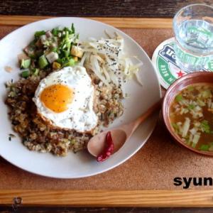 ひき肉とニラとゴマのにんにく甘辛炒飯