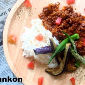 揚げ茄子とオクラとトマトのドライカレー