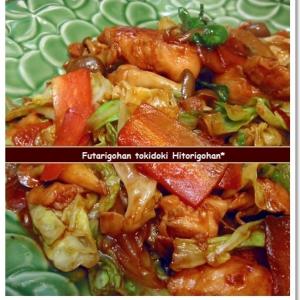 鶏もも肉のケチャップめんつゆ焼き。献立。