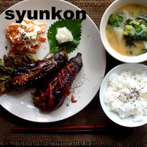 茄子の肉詰め定食。