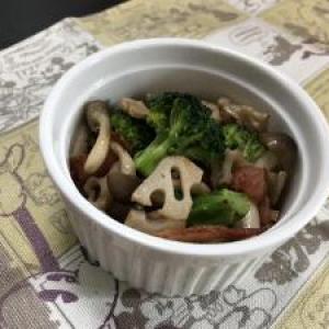 ブロッコリーと蓮根のペペロンチーノ風炒め
