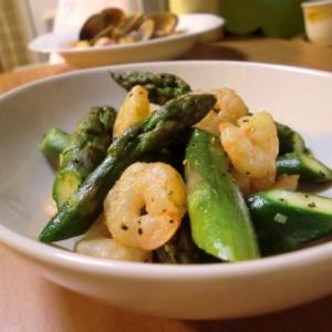 アスパラと海老のガーリックソテー