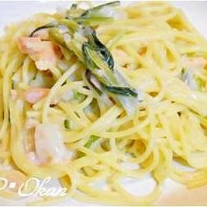 鮭と壬生菜のクリームスパゲティ