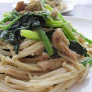ツナとえのきほうれん草のバター醤油