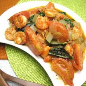 エビとトマトのバジル炒め