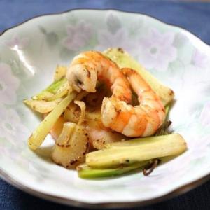 エビとセロリとブロッコリーの芯の炒めもの