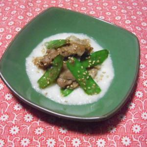 豚バラと絹サヤの ゴマポン酢炒め