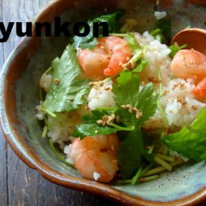 三つ葉とエビのご飯。