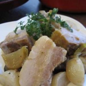 ストウブ鍋で、豚バラの白ワイン煮