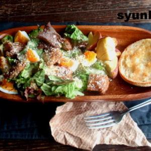 照り焼きチキンとゆで卵とアボカドのサラダ