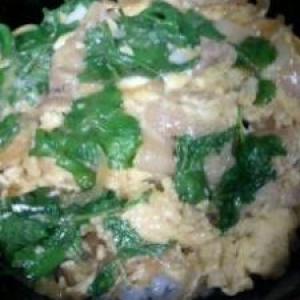 牛肉とごぼうの丼 のち 卵とじ