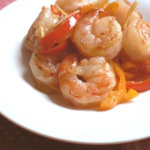 えびとパプリカの塩しょうが炒め