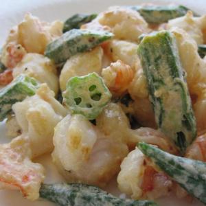 海老とオクラのガーリックマヨ炒め