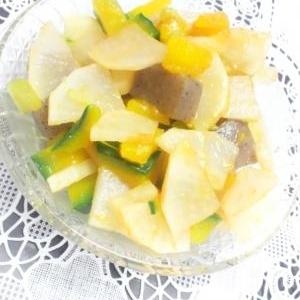 大根かぼちゃ蒟蒻のコンソメトマトサラダ