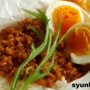 ミートソースと半熟卵のっけご飯