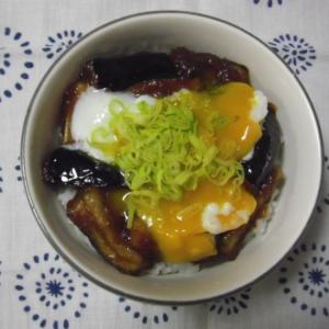 焼肉のたれで揚げナスと温泉卵のさっぱり丼