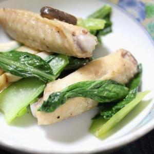 手羽中とチンゲン菜とエリンギの炒めもの